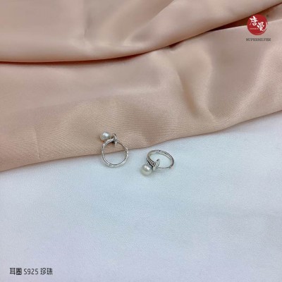 纯银镶嵌淡水珍珠耳扣