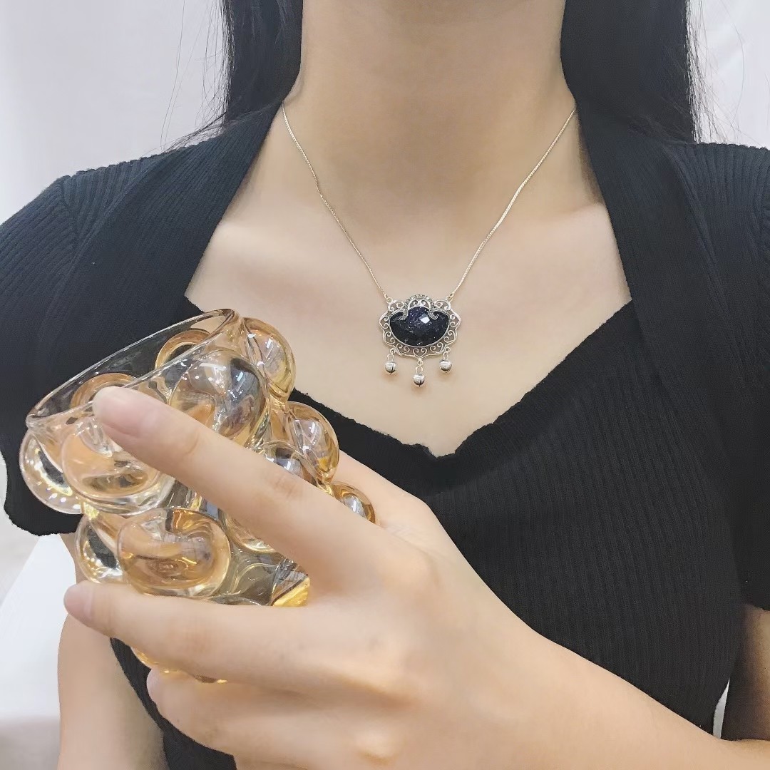 纯银复古民族风蓝金沙项链