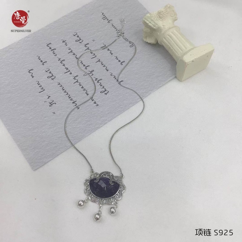 纯银复古民族风蓝晶沙项链