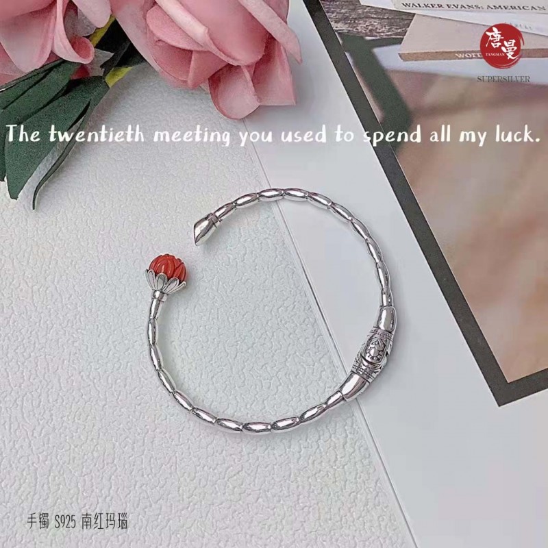 好运连连-- --纯银镶嵌南红玛瑙手镯