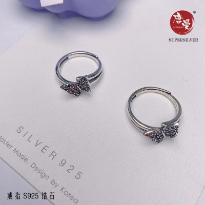 韩范风纯银镶嵌彩锆戒指