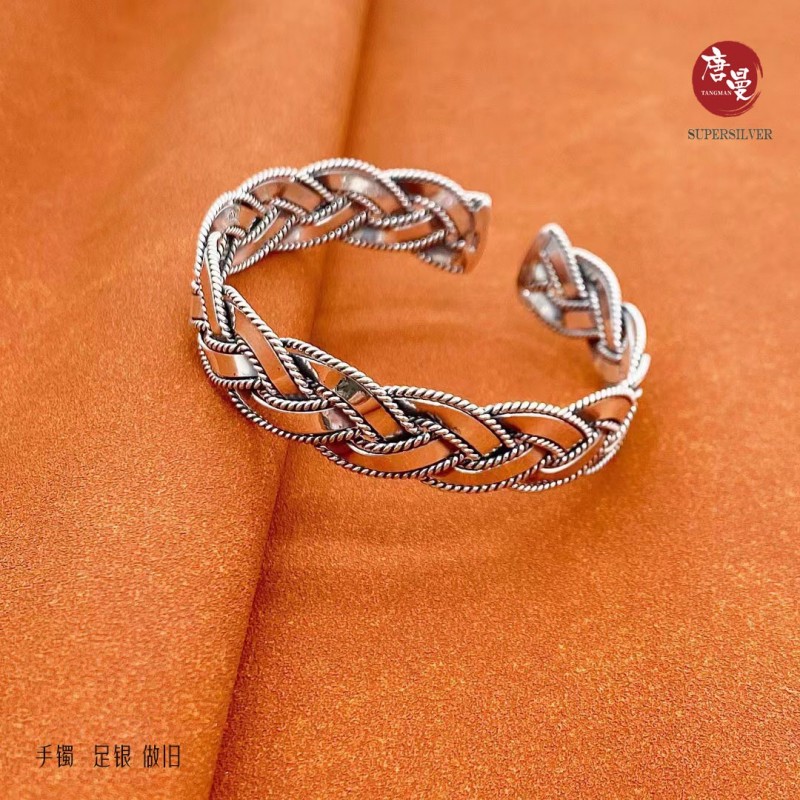 潮流男士款 复古国潮风男士扭麻手镯 开口