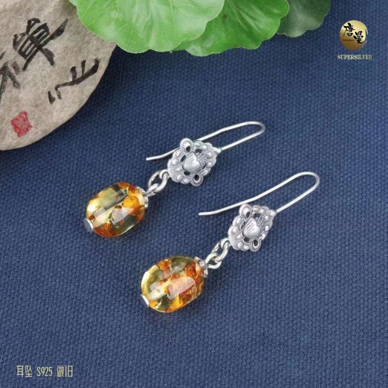 纯银花珀耳坠