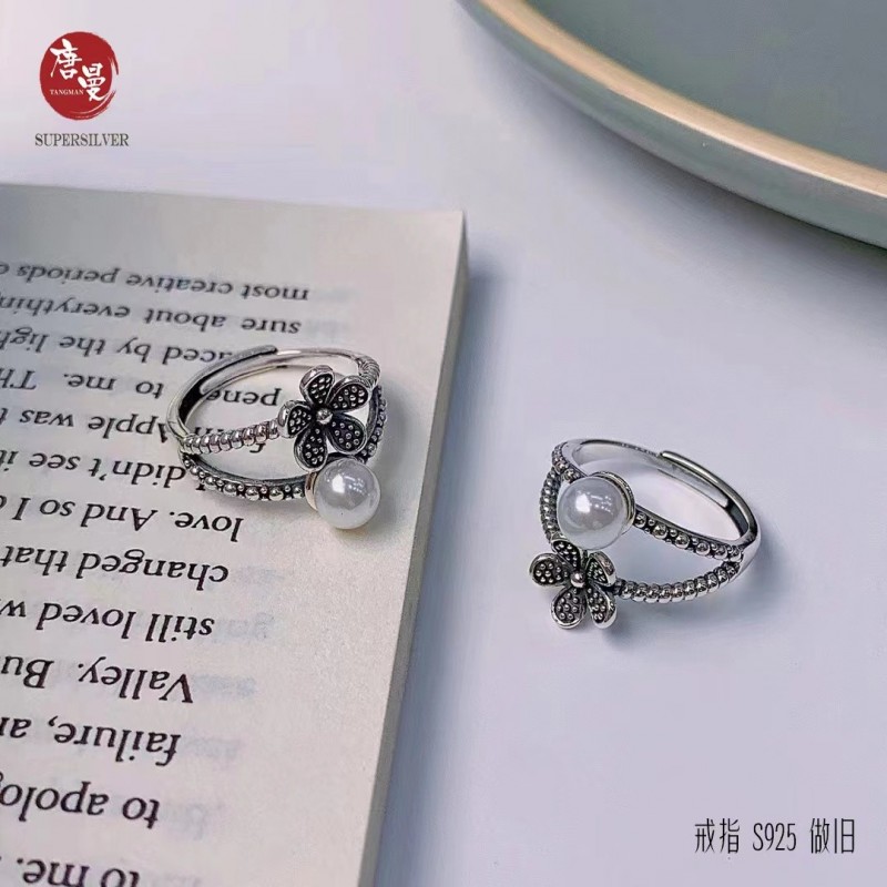 纯银镶嵌贝珠,戒面双层复古风设计,寓意:你是我心中永恒的明珠绽放之花。