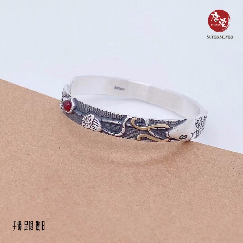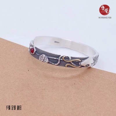【年年有余】复古风足银精工手镯