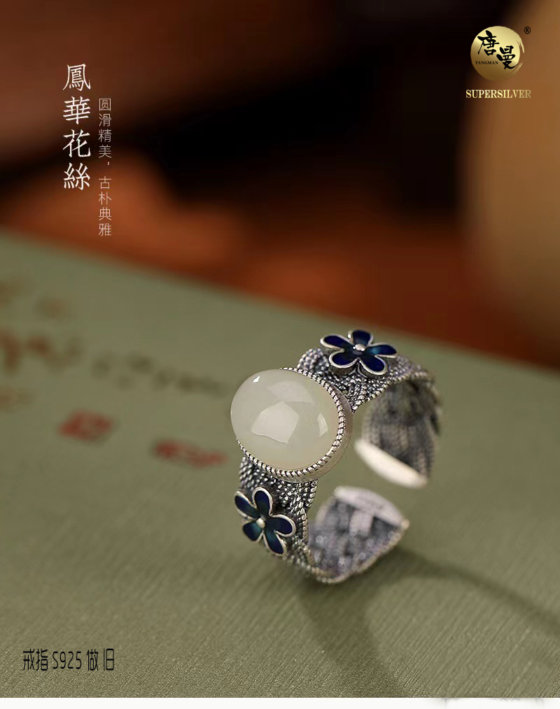 风华花丝---镶玉石戒指
