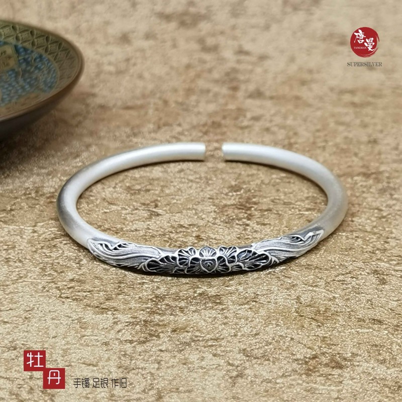 【牡丹】手镯 足银 作旧 (克重21克左右)