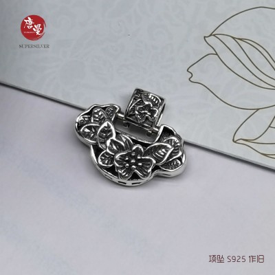 莲花项坠 S925 作旧