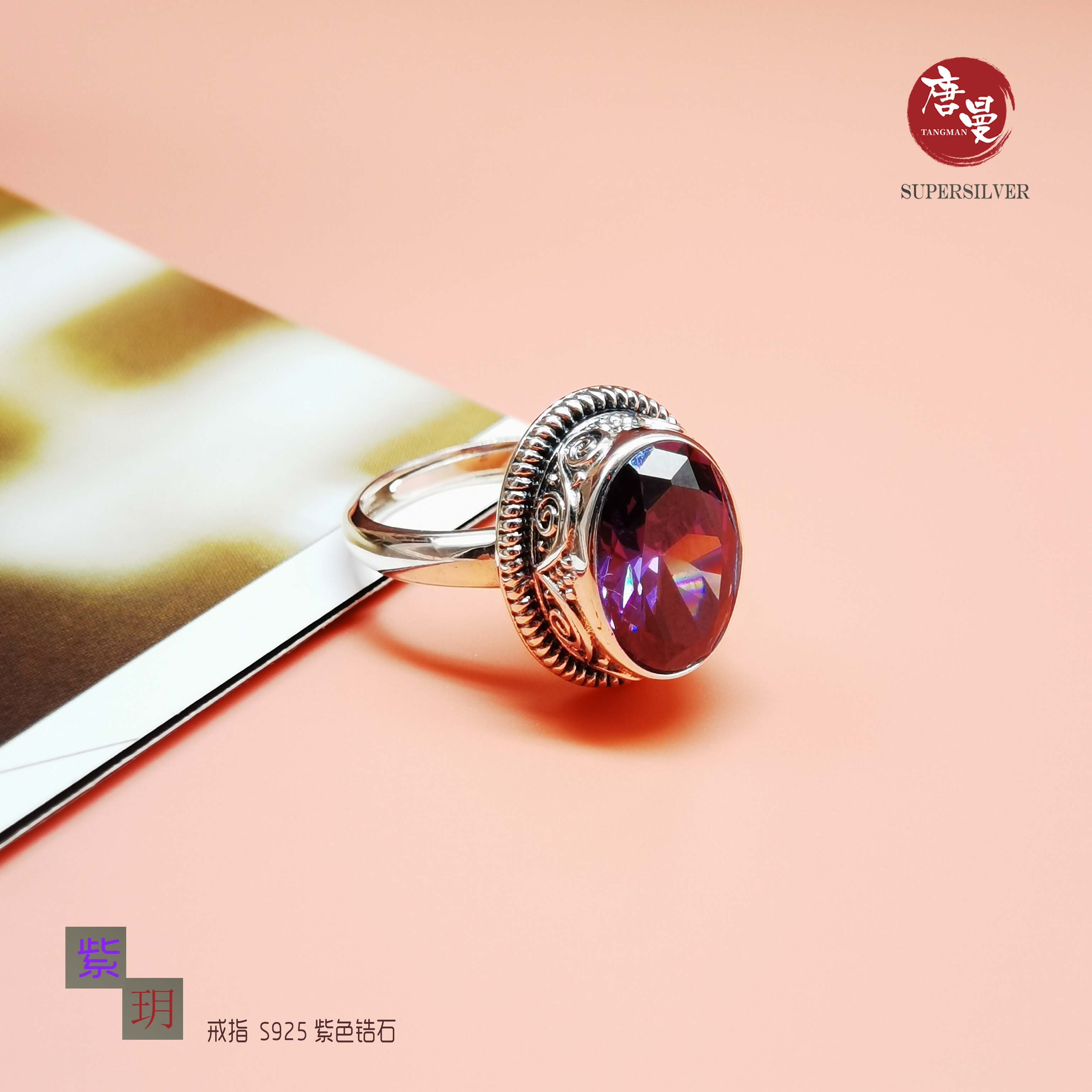 S925 作旧 紫色锆石