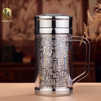 百福手把杯 内胆足银 容量:350左右,内胆银重40克