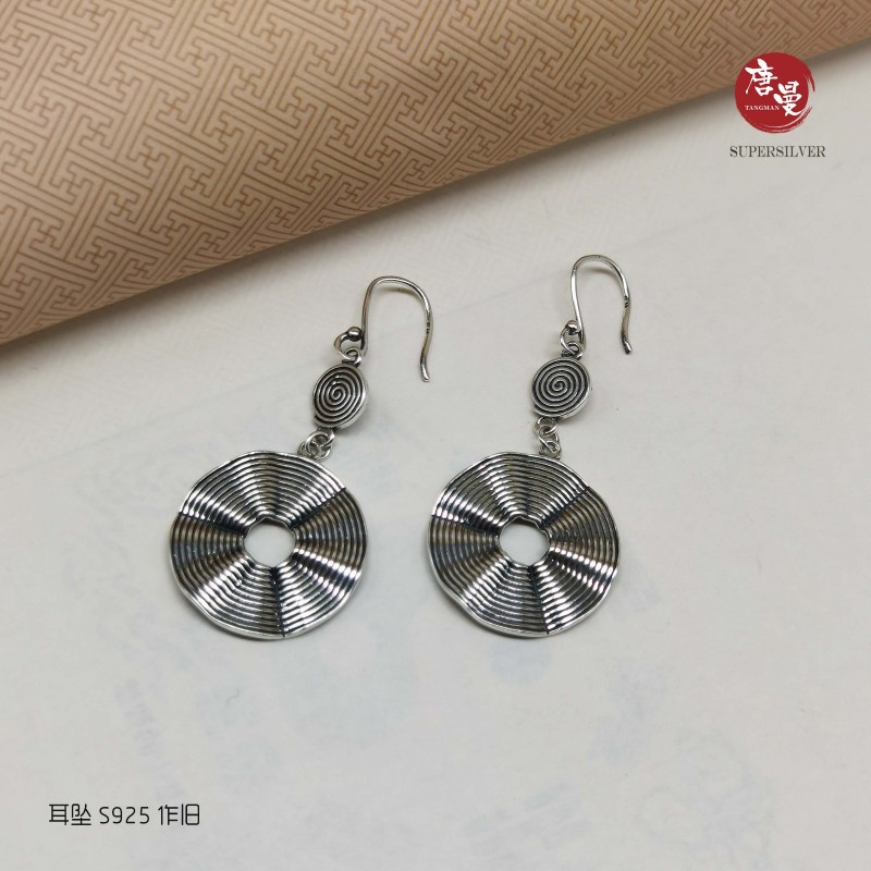 圆形刻面耳坠 S925