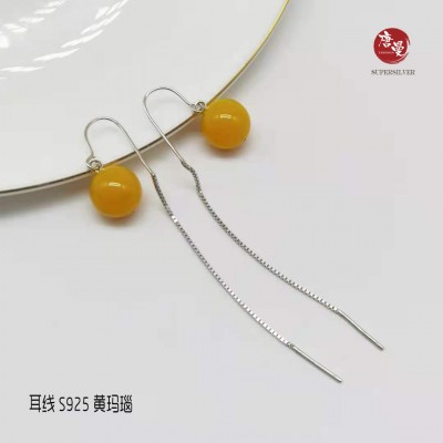 黄玛瑙耳线 S925