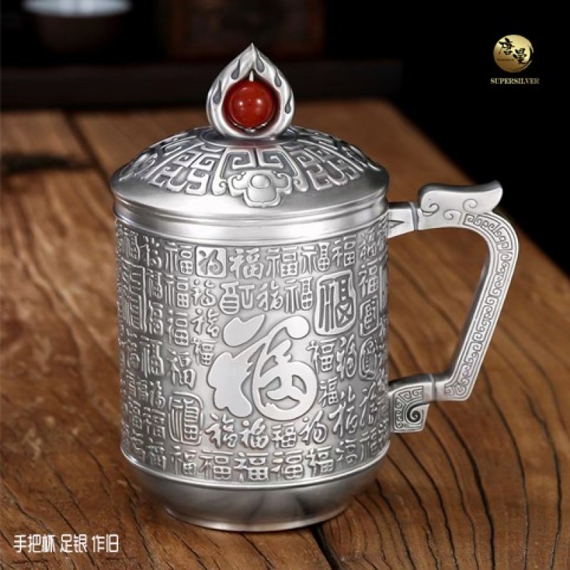 【鸿运当头】手把杯(男款)足银 作旧