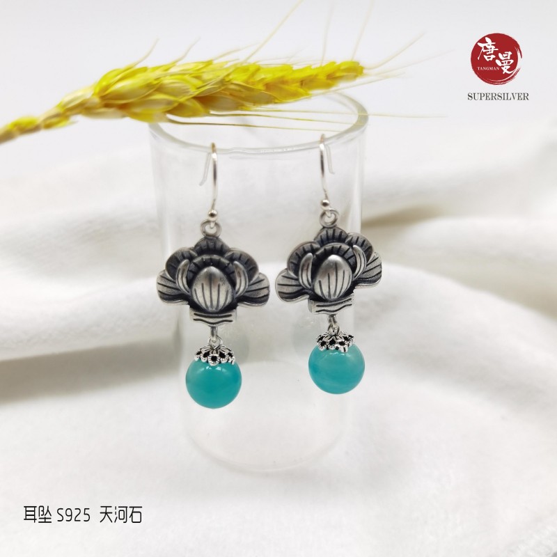 莲花配天河石耳坠 S925
