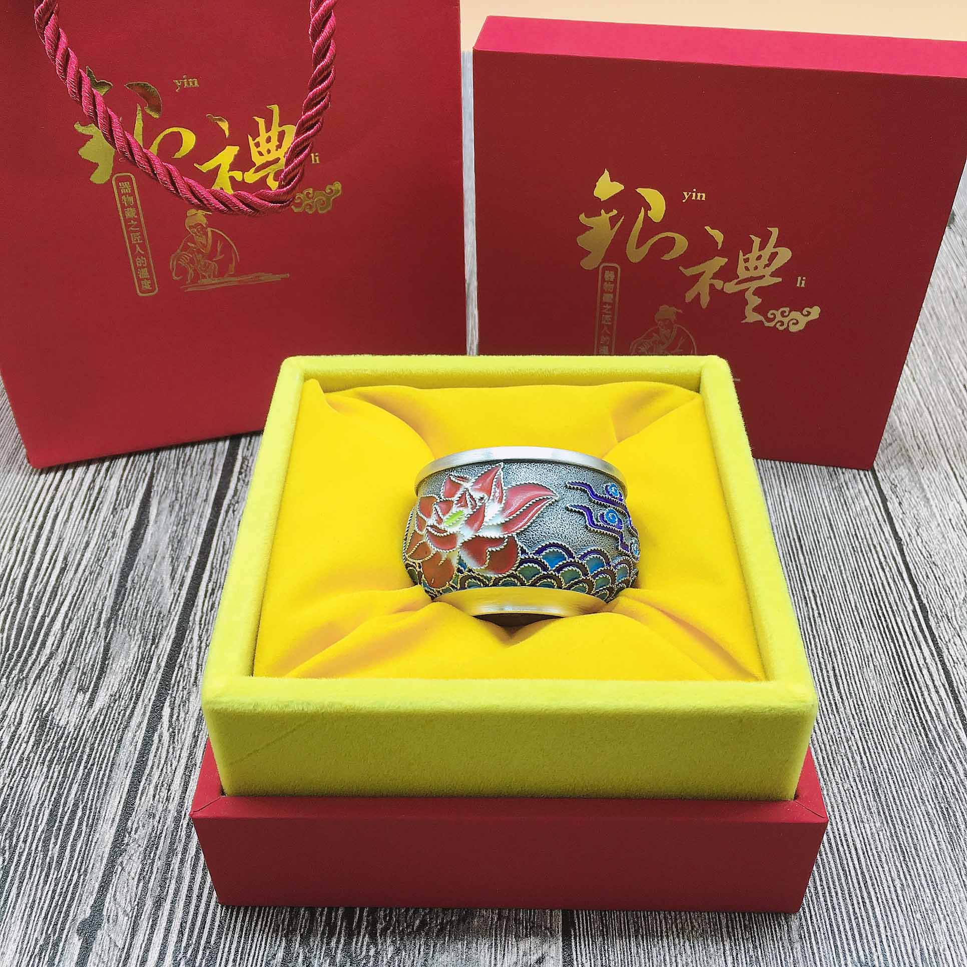 【荷塘月色】 银茶杯 珐琅工艺 52克左右