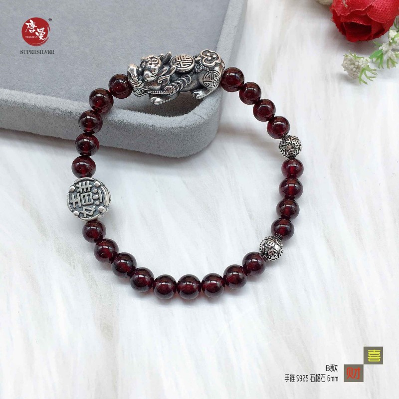 手链 S925 石榴石6mm