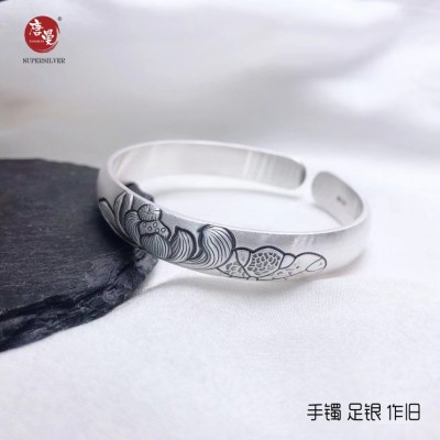 莲生吉祥 手镯 足银 作旧 克重:50克左右