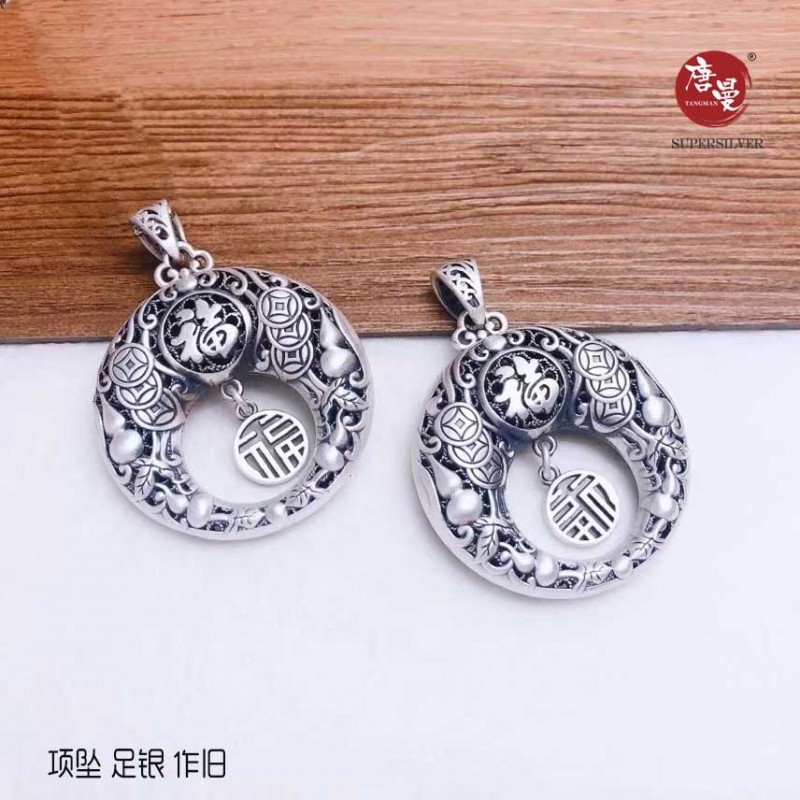 项坠 足银 作旧 21克左右