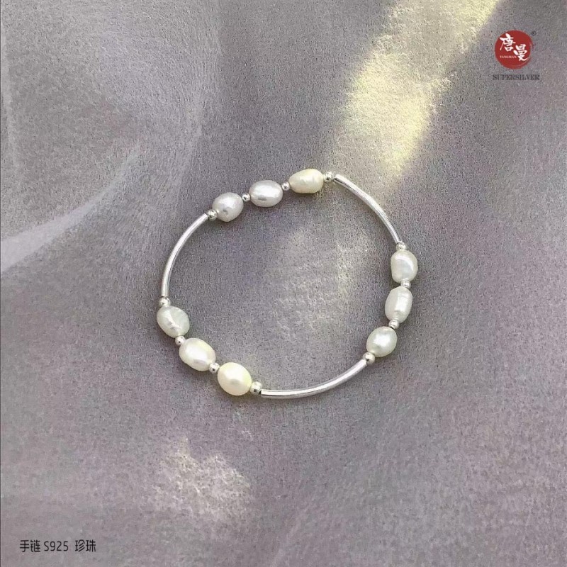 纯银珍珠手链,特选用不规则巴洛克珍珠于纯银相结合设计