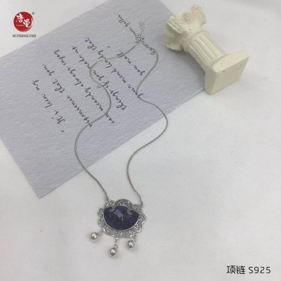 纯银复古民族风蓝金沙项链