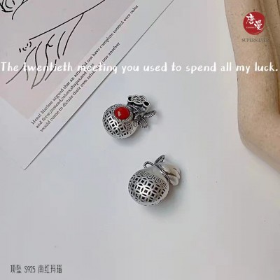 财源滚滚来-- -- 纯银镶嵌南红玛瑙项坠