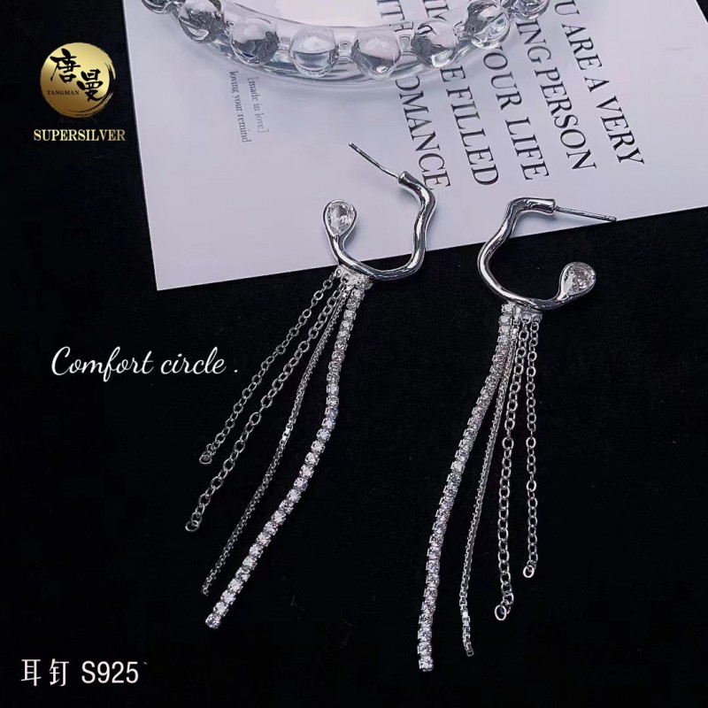 简约时尚银镀白流苏耳钉