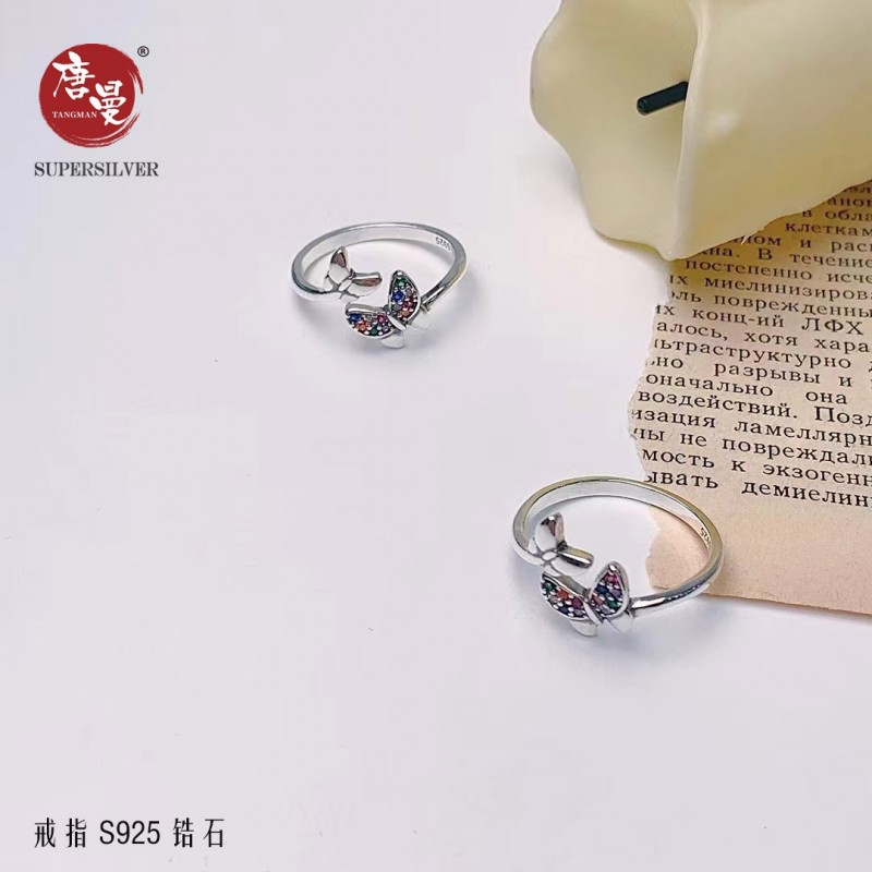 韩范风纯银镶嵌彩锆戒指