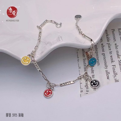 纯银滴釉脚链,此款为彩色笑脸设计风格,