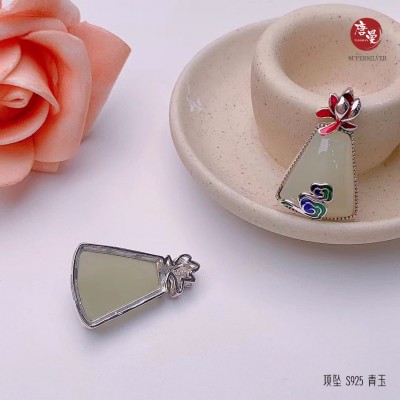 纯银镶嵌青玉项坠古典时尚风,彰显大气韵味两款任选