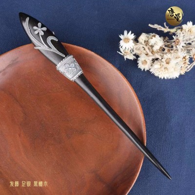 国风黑檀木包银发簪