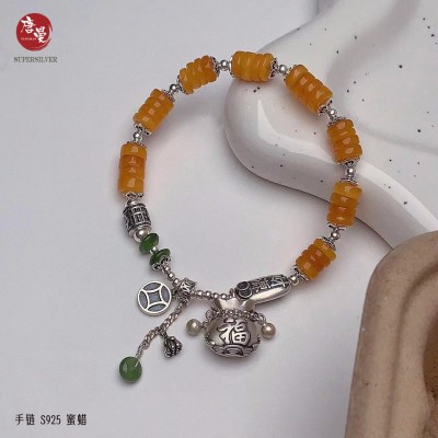 蜜蜡手链----财源滚滚 S925