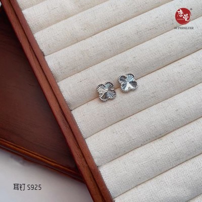 纯银车花工艺四叶草系列耳钉