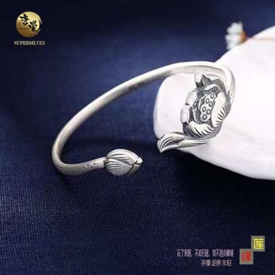 【莲缘】手镯 足银 作旧