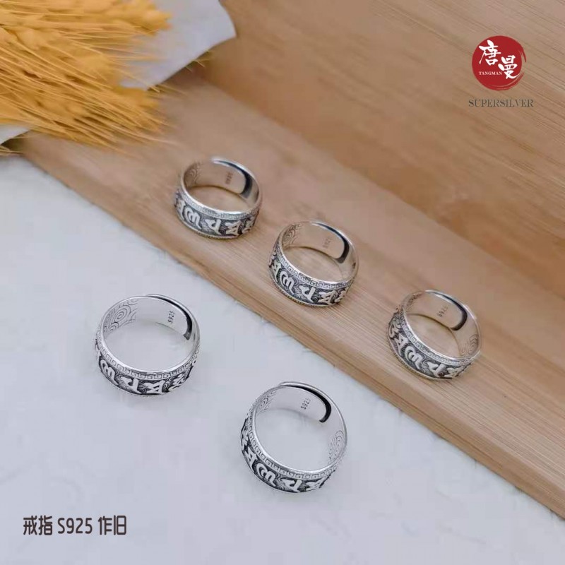 六字真言戒指 S925 作旧