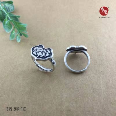 牡丹戒指 足银 作旧