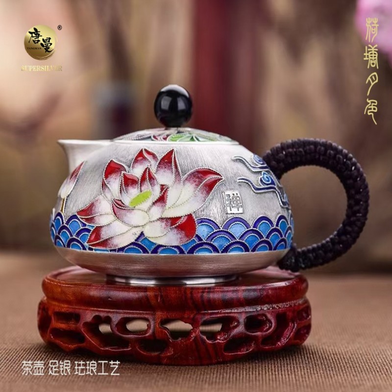 【荷塘月色】 银茶壶 足银 珐琅工艺