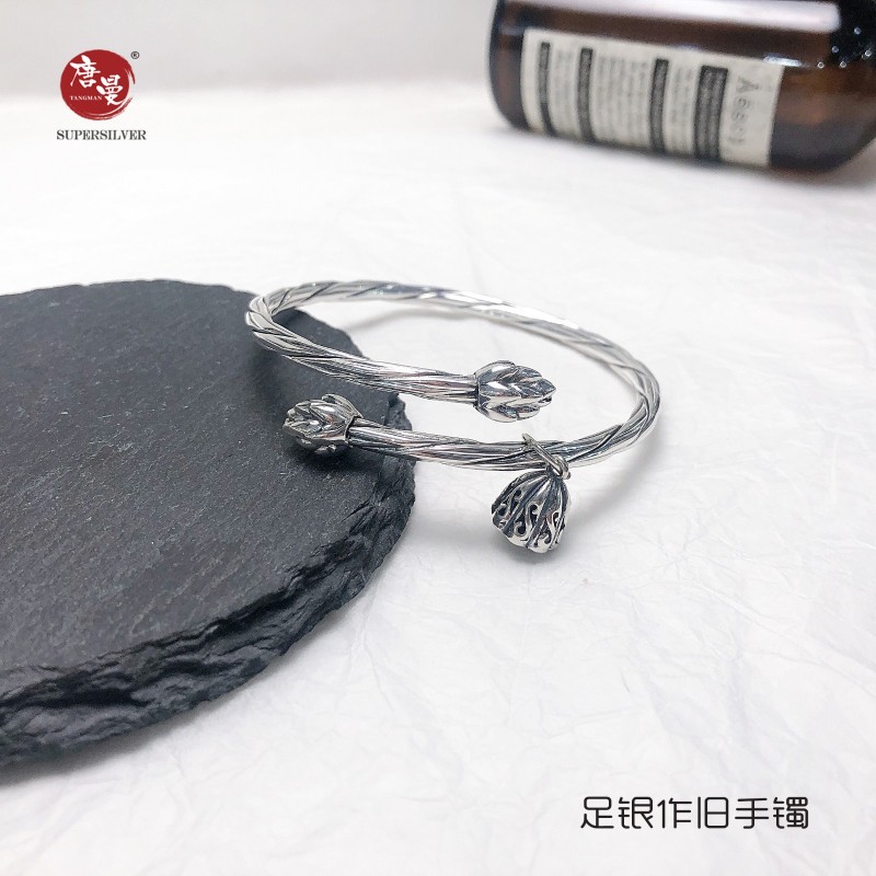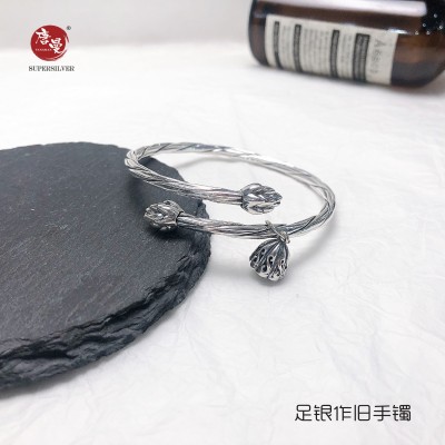 佳偶天成A款 足银作旧手镯 克重26克左右