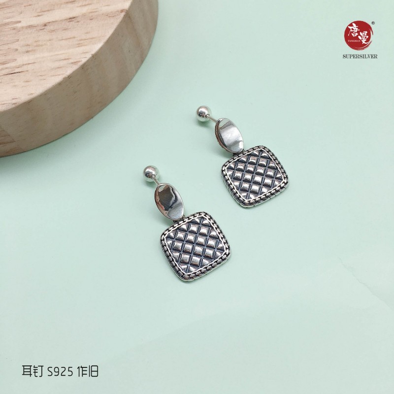 方格作旧耳钉